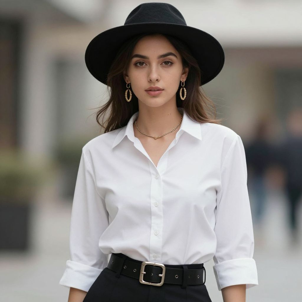 Girl in Black Hat and Dress