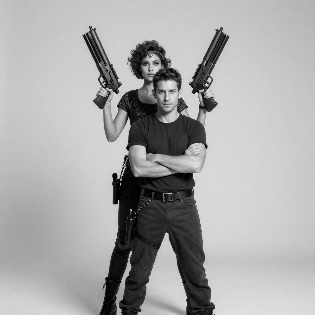 Monochrome Futuristic Couple with Guns