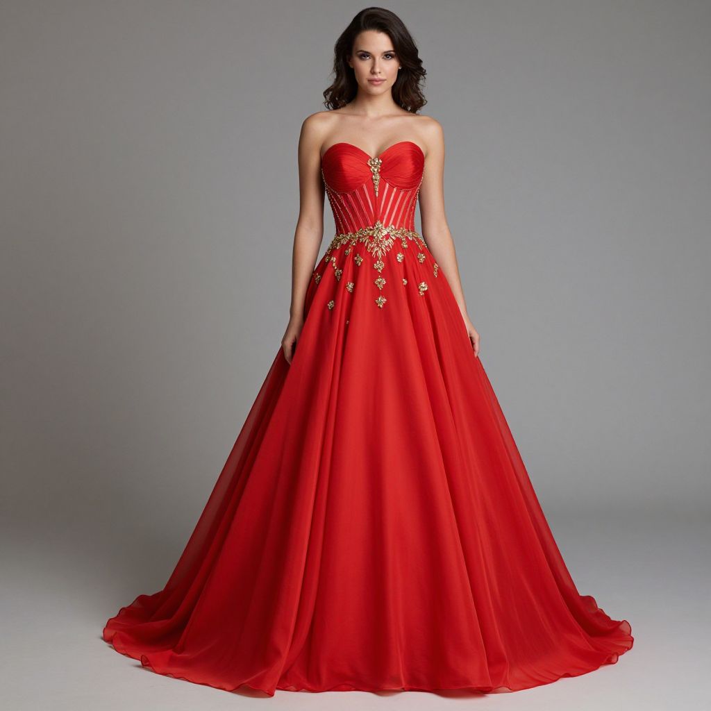 Elegant Red Corset Evening Gown