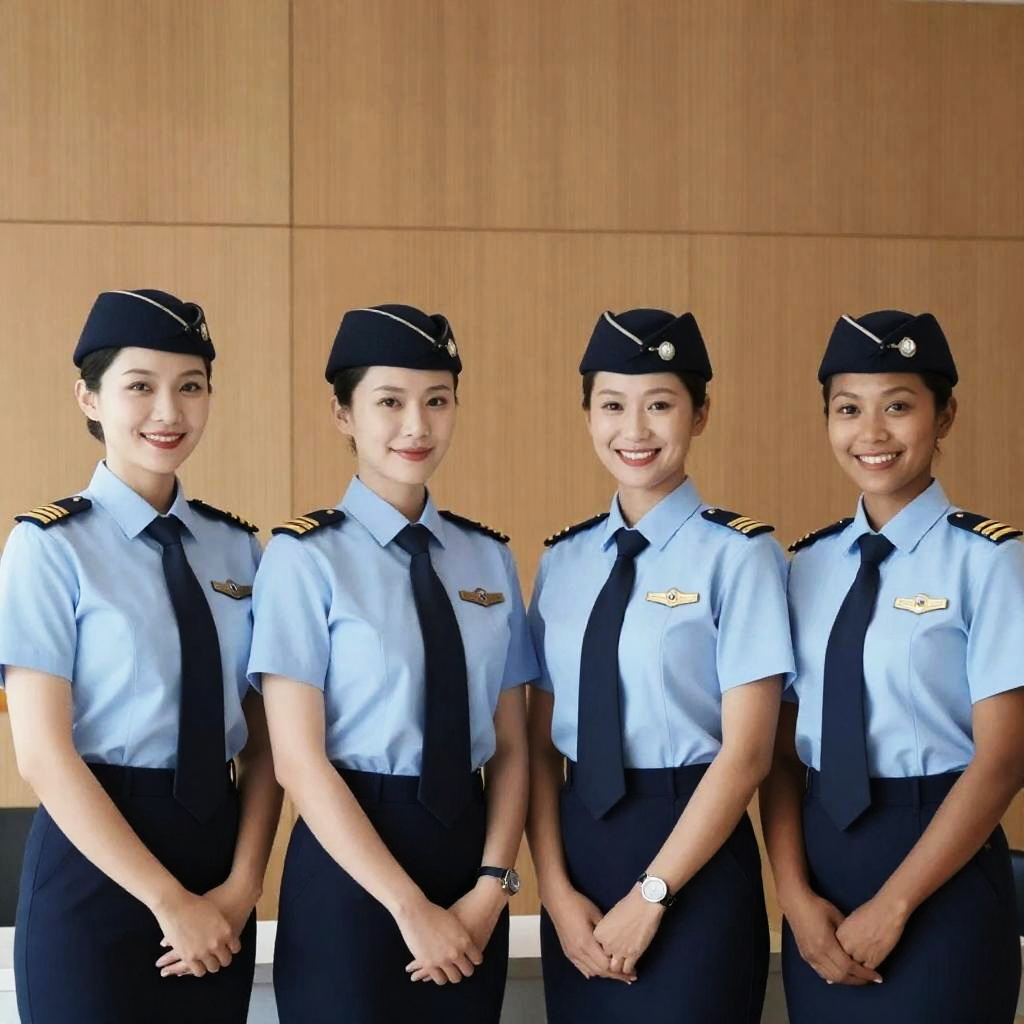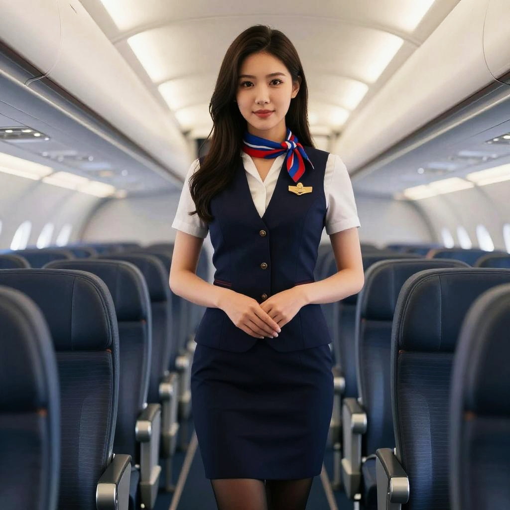 (back to viewers, from behind, back view:1.4), (full_body:1.6), looking away, facing away, distracted, pov, mature female, elegant, wearing dark blue uniform, stewardess, garrison cap, white gloves, (pantyhose:1.2), (masterpiece, high quality:1.2), realistic, (detailed skin texture:1.3), (goosebumps:0.5), subsurface scattering, (crowded airport terminal:1.1), in an escalator, Escalatorview