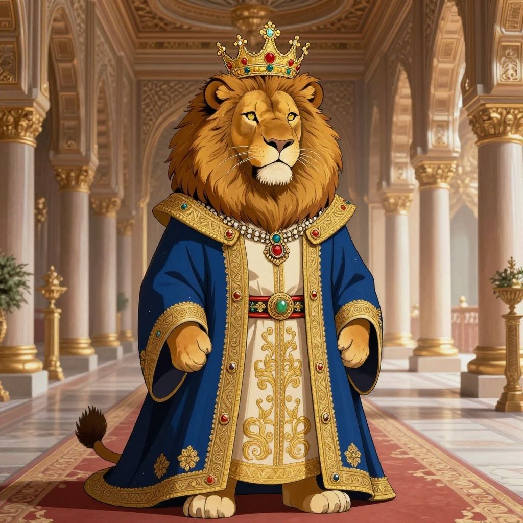 Digital fantasy illustration of an anthropomorphic seahorse king, adorned with a jewel-encrusted waist-length coat in turquoise and gold. The seahorse wears a detailed golden crown with large gemstones and holds a golden staff. Behind the figure is an ornate navigational map, adding a mystical and regal theme to the composition.