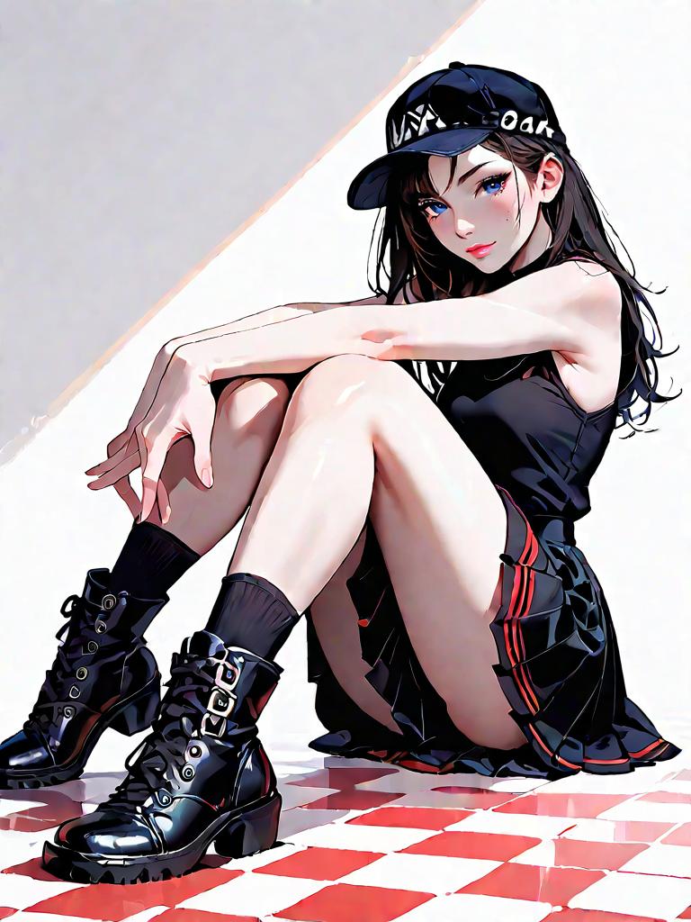 ZPDXL, source_cartoon, 21 year old jewish woman with wavy black hair, squatting, paw pose, mouth hold, blue squeakytoy in mouth, leather collar and bell, rabbit ears, wearing high heel sneakers, white thigh high socks