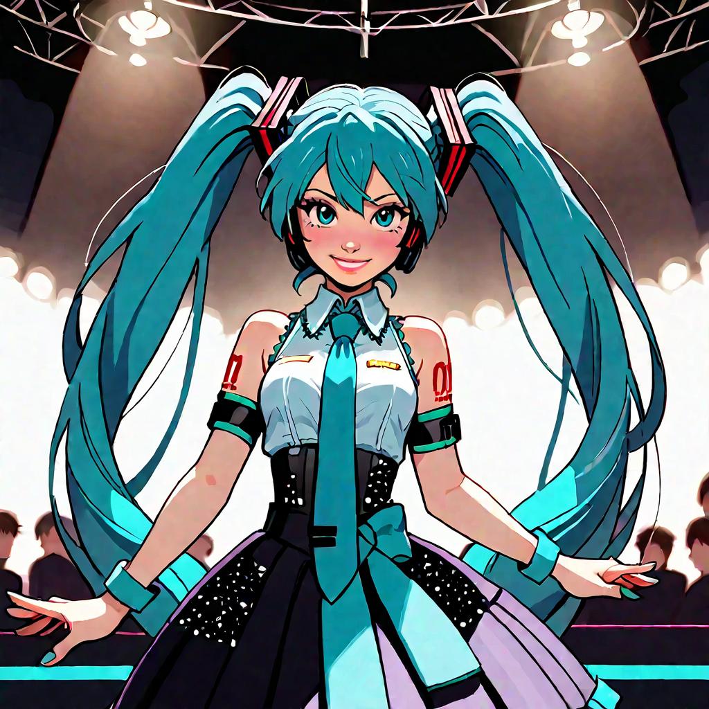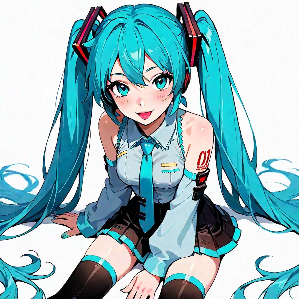 Score_9, best quality, masterpiece, uncensored, source_anime1girl, standing, hatsune miku, looking at viewer, cowboy shot, shirt, pleated skirt, smug, half-closed eyes