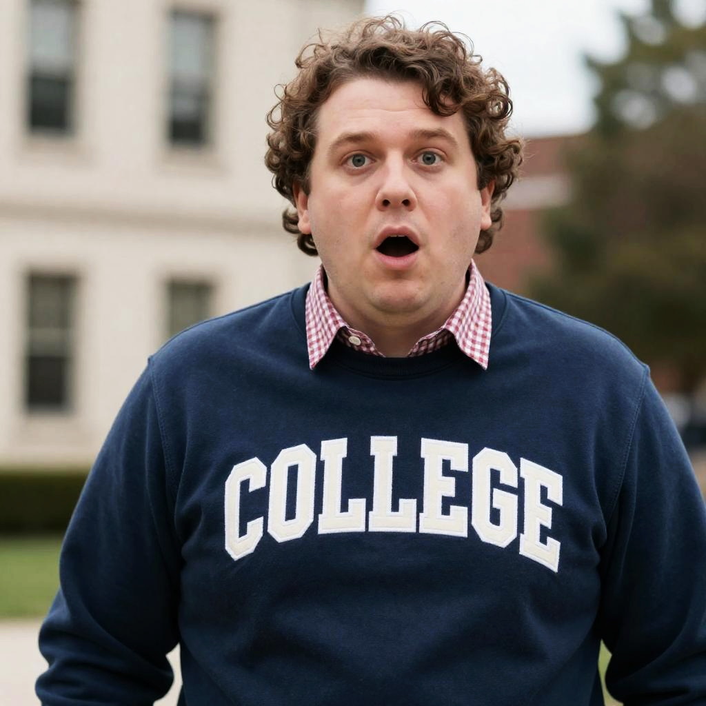 Surprised Man in College Sweatshirt