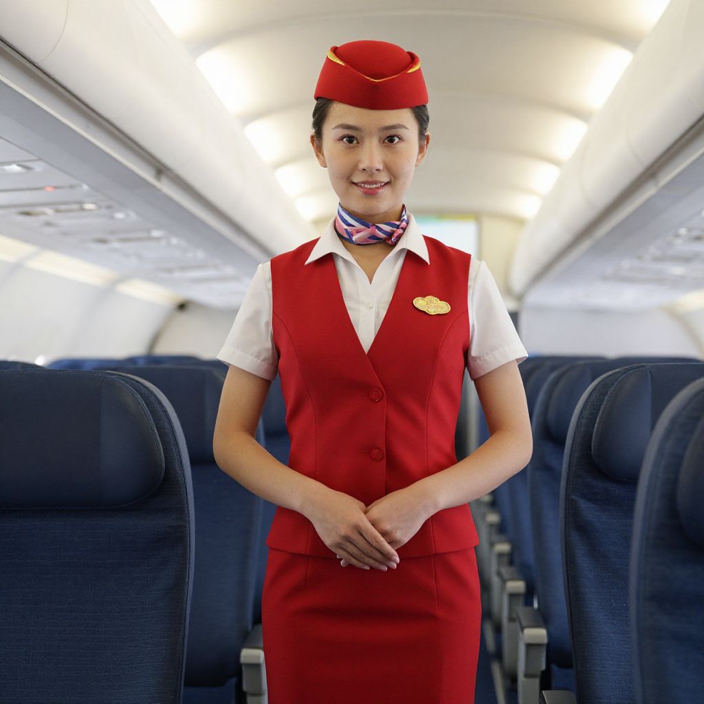 Red Air Hostess in Airplane