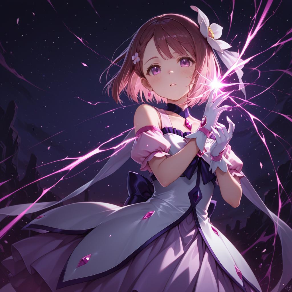 Hanadera nodoka, healin' good precure, 1girl, pink eyes, short hair, pink hair, brown hair, hair flower, hairclip, magical girl, magical girl, by artist tsuki tokage, dark_illustrious