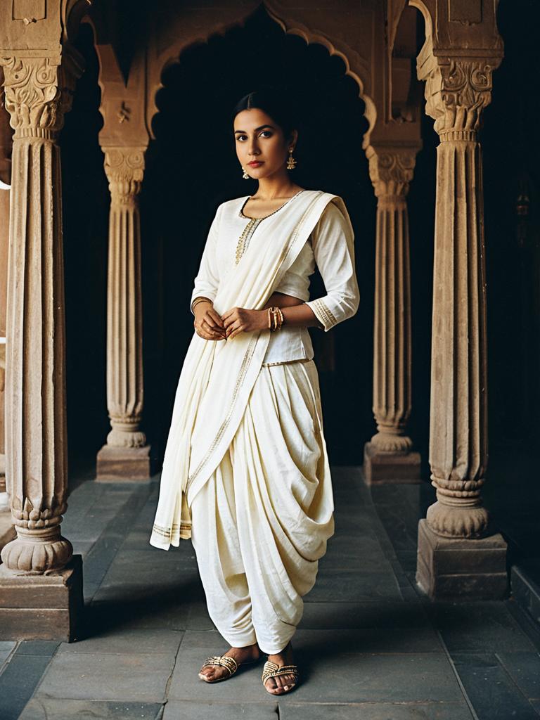 Woman in Dhoti Suit Salwar, cinematic realism, regal cultural editorial shot