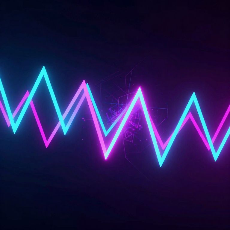 Zig zag prompts: A dynamic, abstract digital artwork featuring vibrant, intersecting zig zag lines in neon cyan and magenta, forming a rhythmic pattern that flows across a dark gradient background, with subtle geometric fractals emerging from the center, evoking motion and energy in a cyberpunk-inspired style.