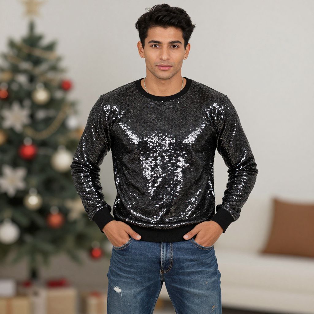 Realistic Male in Sequin Christmas Top