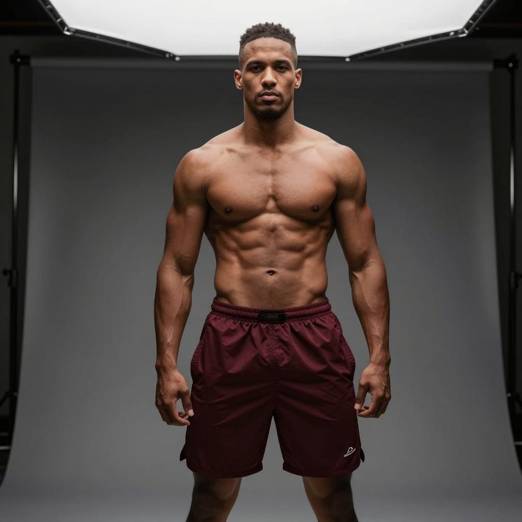 Fit Man with Six-Pack Abs in Maroon Shorts