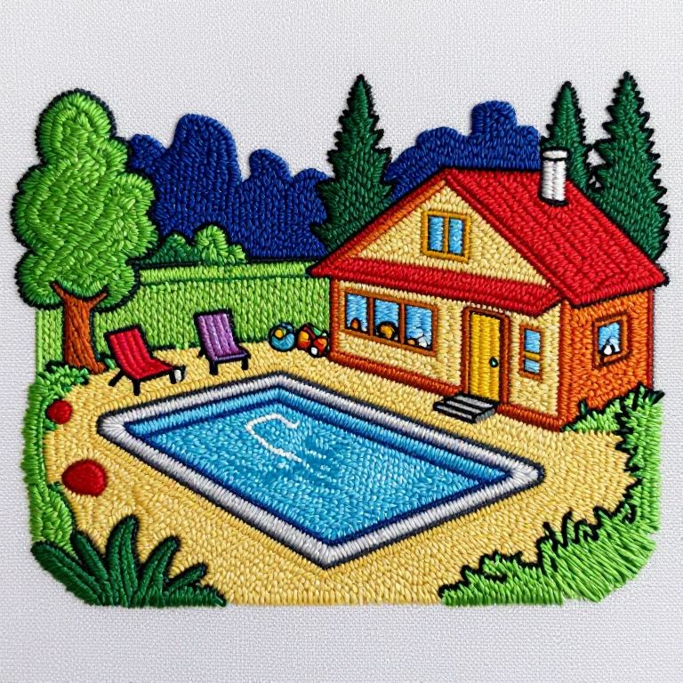 Embroidery Template a cosy motel at night with a swimming pool in the style of Sam and Max and Day of the Tentacle,