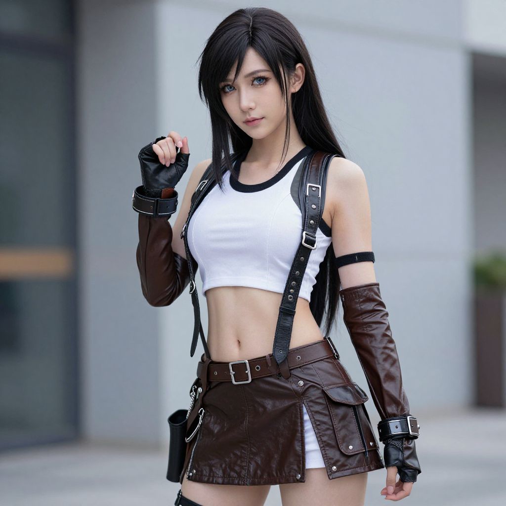 Tifa Leather Outfit Cosplay Pose