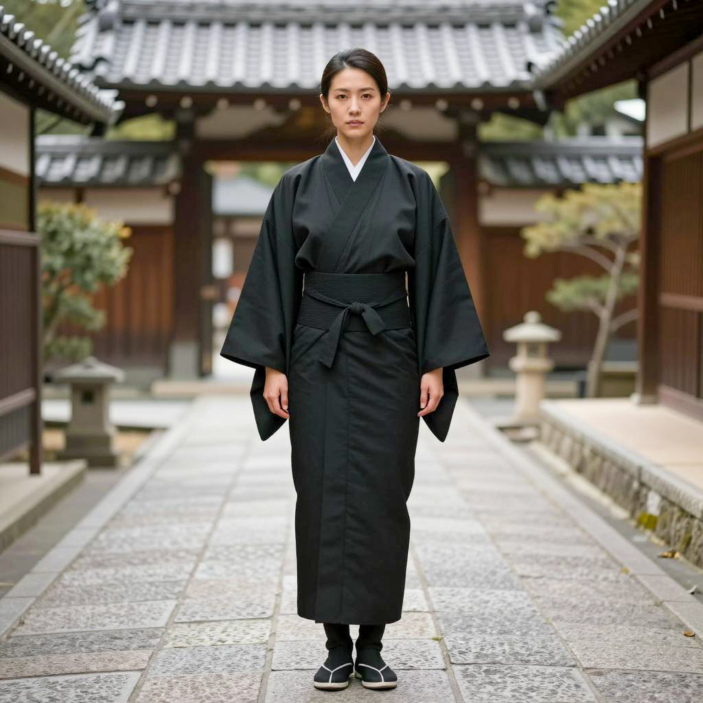 Japanese Woman in Kimono Holding Fox Mask at Torii Gates