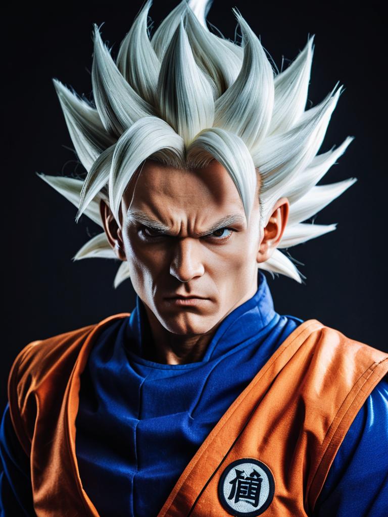 Man in Dragon Ball Super Saiyan costume, professional studio headshot, sharp detail