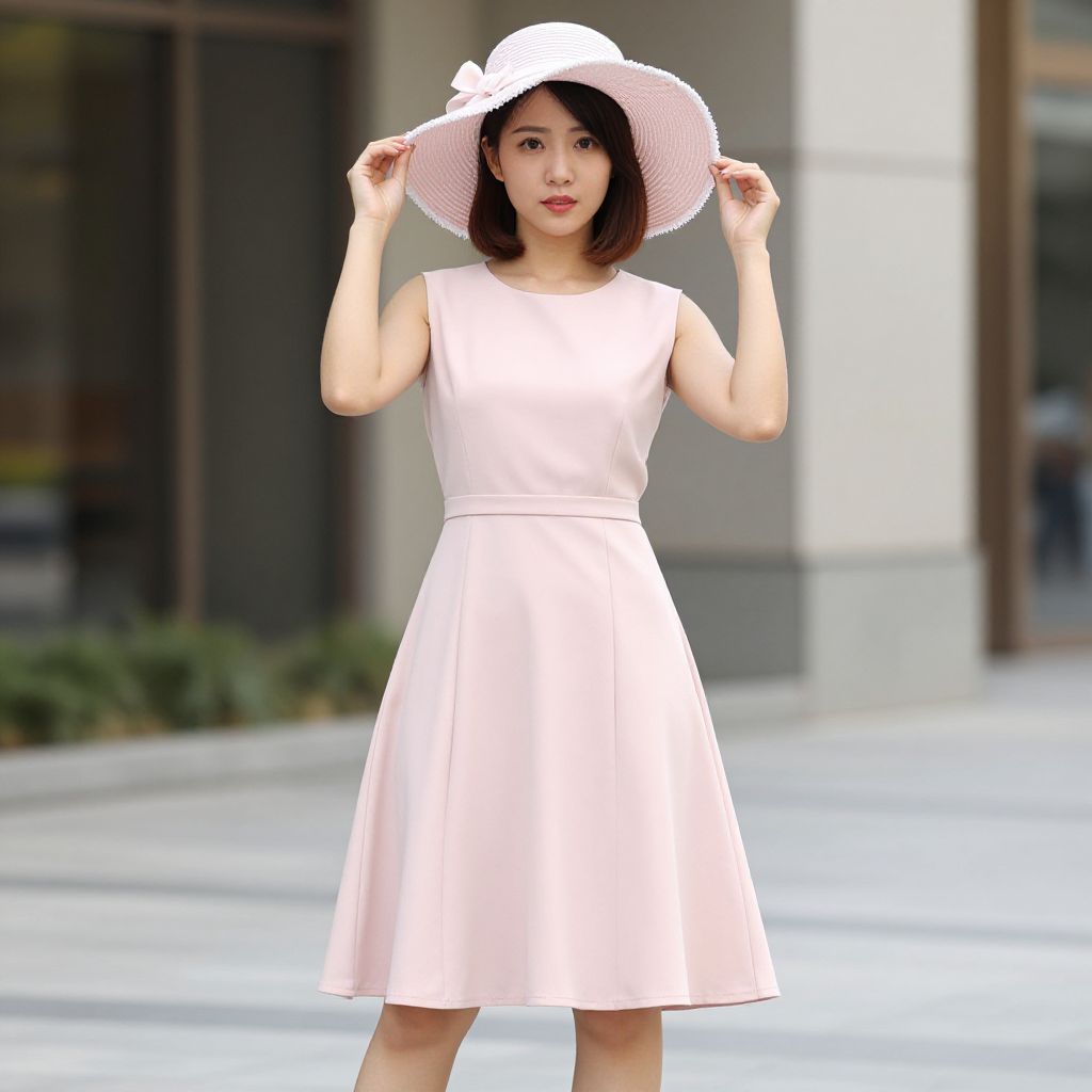 "Woman Lady Style Fashion Clothing Costume, woman in a pink dress and hat posing for a picture"