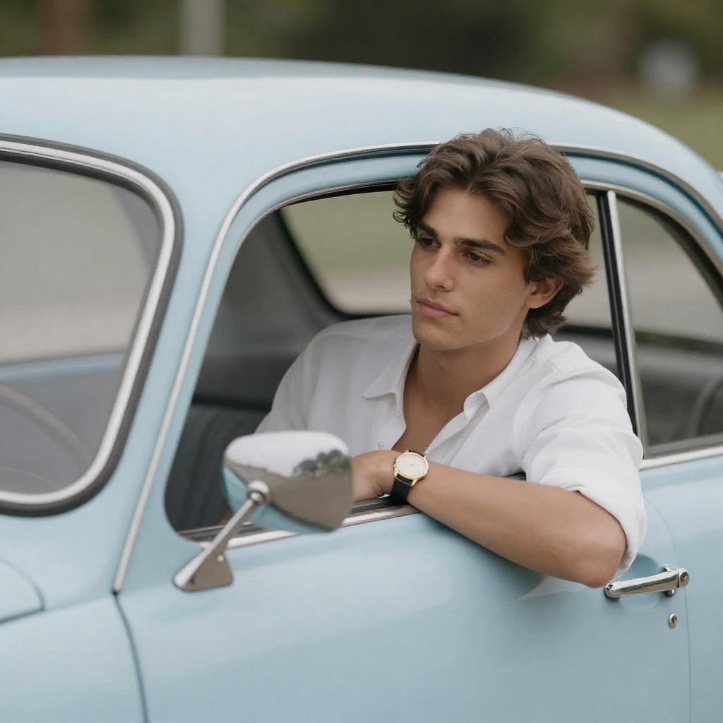 Young Man Leaning from Car Window
