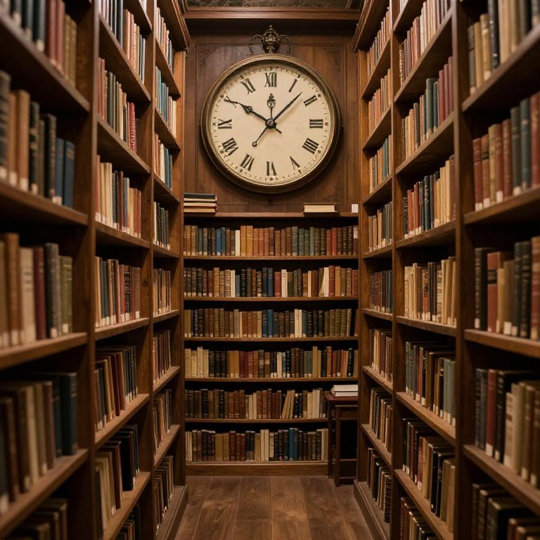 A time-traveling librarian tends to ancient, shifting books that rewrite themselves every hour, preserving impossible pasts and futures in a whispering library.