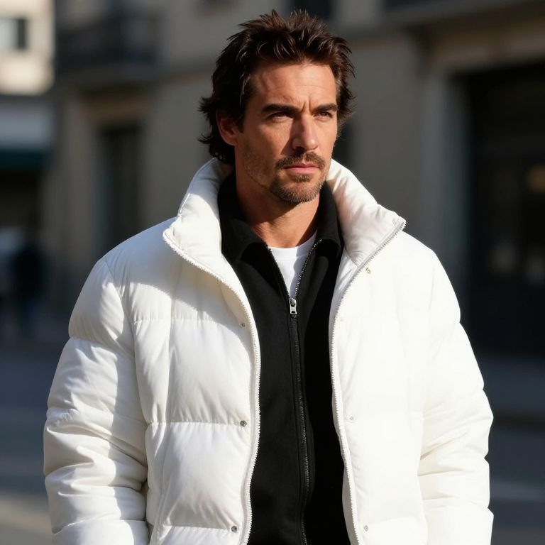 "Samurai Pablo Escobar wearing a white puffer coat on a suny day. Make it realistic, ultra-detailed, very high quality, hyperrealistic, 8k - Upscaled by,"
