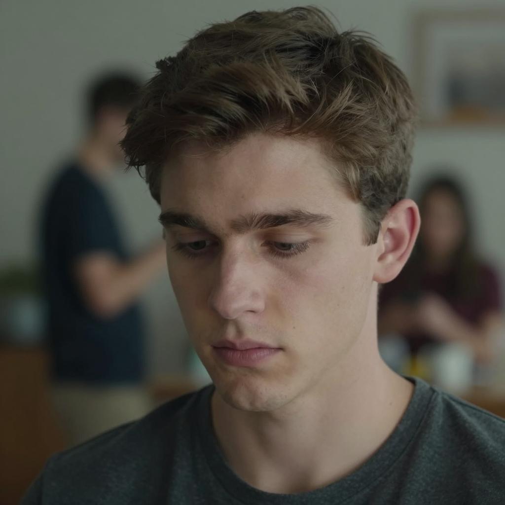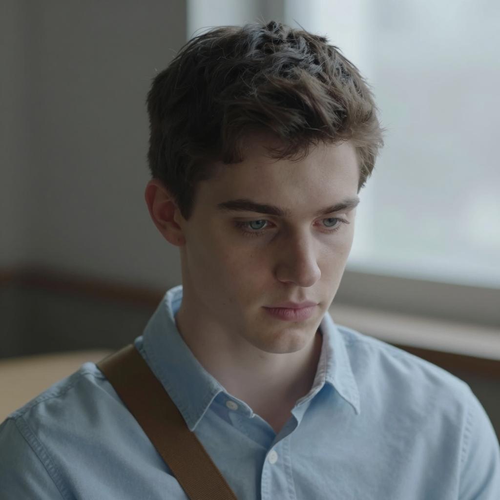 Concerned Young Man in Dim Room