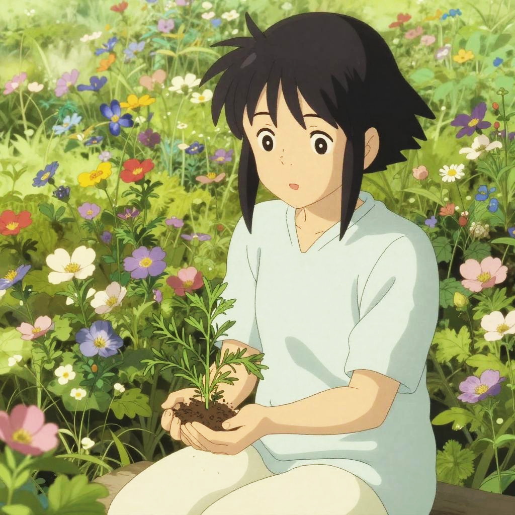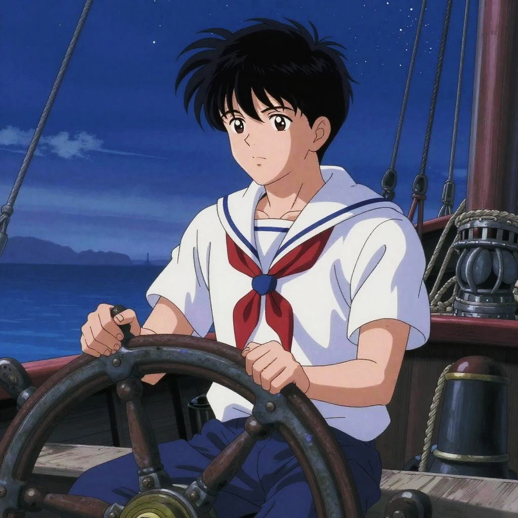 A wistful puppeteer, with delicate fingers manipulating strings attached to wooden marionettes, sitting in a dimly-lit vintage theater with crimson curtains and ornate woodwork, expressing melancholic yearning, depicted in the soft and poetic style of Moto Hagio.