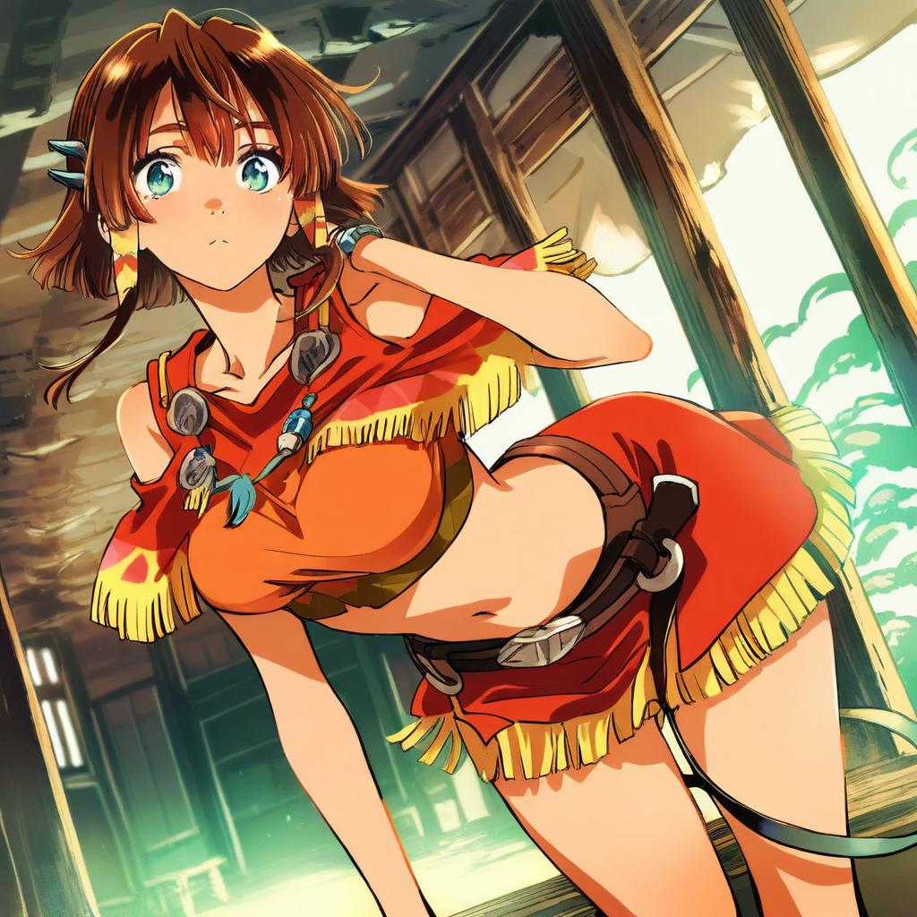 Amy (suisei no gargantia), suisei no gargantia, 1girl, blue eyes, green eyes, brown hair, short hair, fringe trim, skirt, bare shoulders, by artist binsen, illustrious