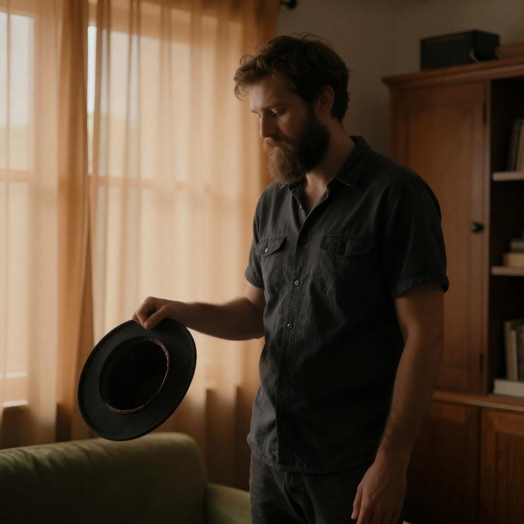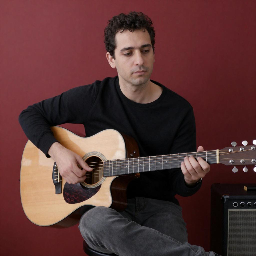 Bearded Guitarist in Dim Room