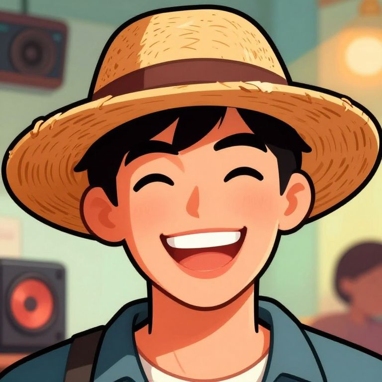 "Mass Media at a big smile on his face and wears a straw hat. The atmosphere is cheerful and exciting. Digital illustration with vivid colors and clear outlines.,"