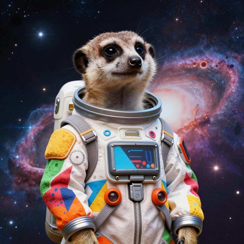 Highly detailed 8k illustration of a tiger wearing a spacesuit, with bold graphics and a modern design, set against a cosmic background. Realistic textures, vibrant colors, and a playful, sci-fi theme.