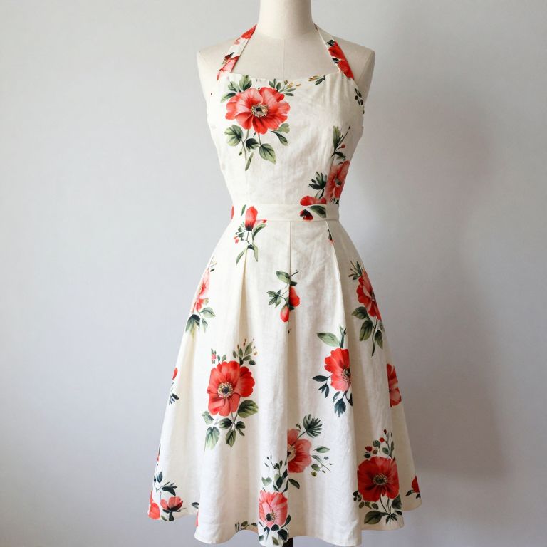 1950s rose and poppy print linen halter dress | vintage floral sun dress | xs