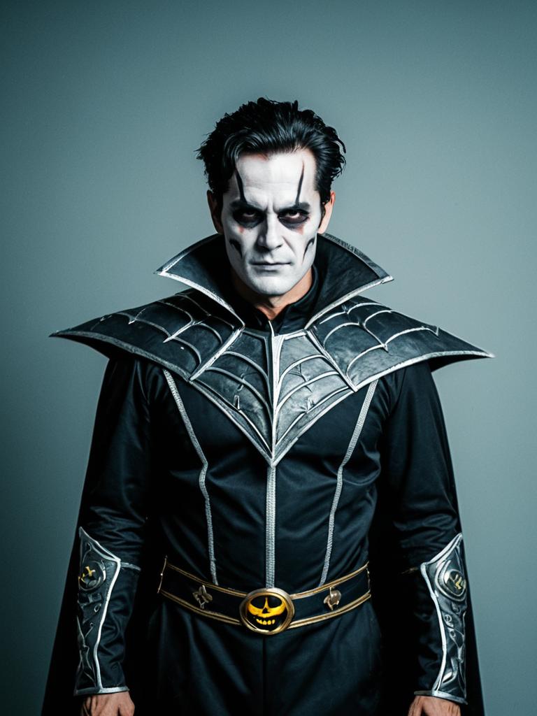 Man in High Quality Halloween costume, photorealistic cosplay studio portrait