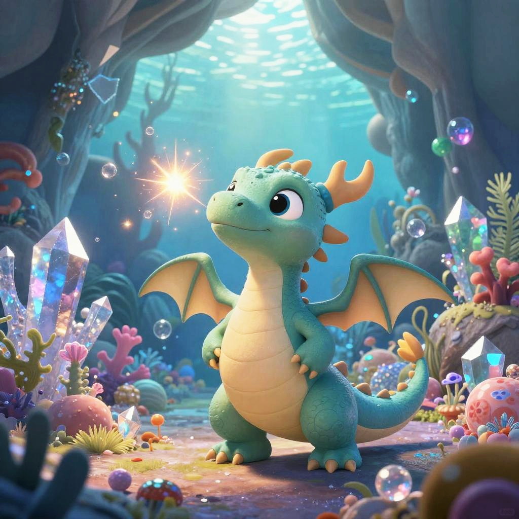 A vibrant Disney Pixar-style illustration featuring a pink jellyfish with white spots inside a decorated Easter egg shell. The scene is set in a lush garden with colorful painted Easter eggs, green grass, and blooming flowers. Whimsical undersea and garden elements blend seamlessly, creating a vivid pastel composition full of warmth and creativity.