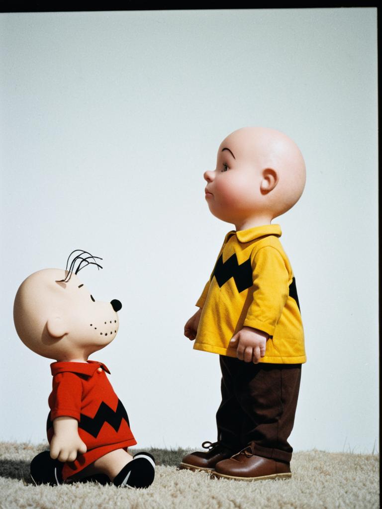 Man in Charlie Brown Costume, cinematic realism, comedic editorial shot
