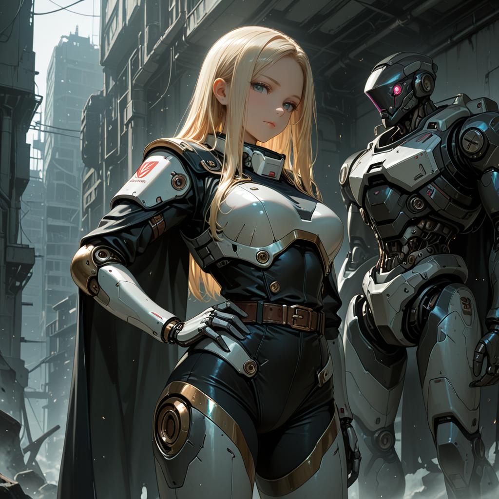 Sunset Sci-Fi Anime Girl with Ammo
