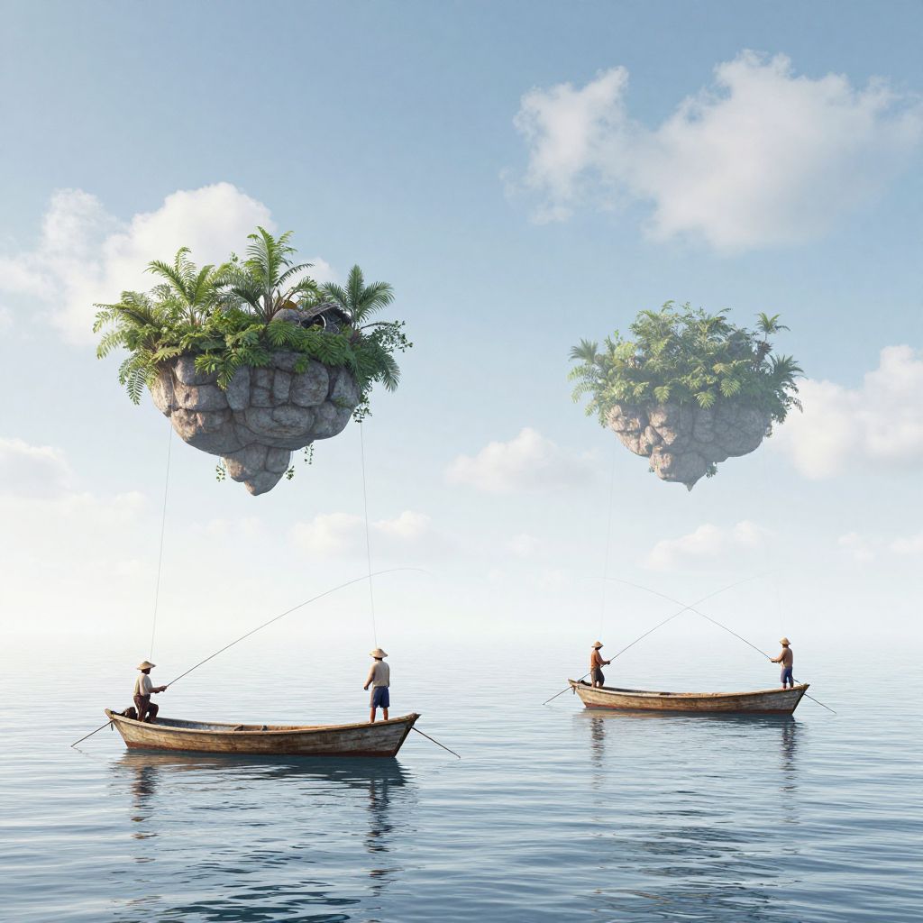 Fishermen Beneath Floating Islands