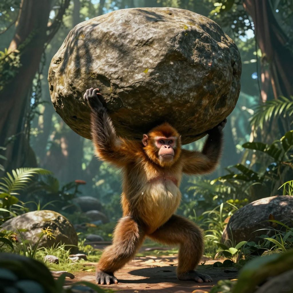 Buff Monke Lifting Ancient Boulder