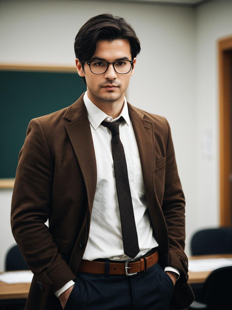 Young Professional Man in Brown Jacket and Glasses