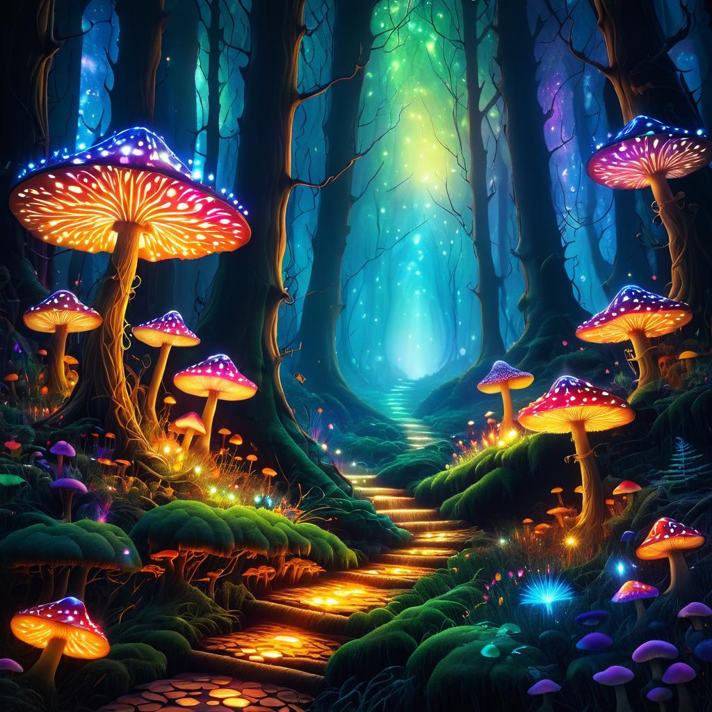 Fantasy Forest with Glowing Mushrooms