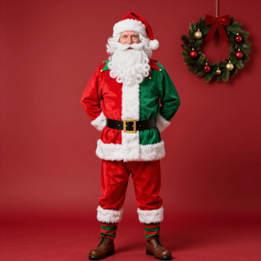Man Running in Santa Claus Costume with Christmas Wreath