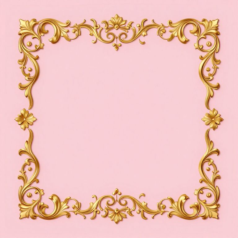 Tuscan-inspired design showcases three ornate gold scroll motifs symmetrically arranged against a soft pink background, featuring intricate floral patterns and arched detailing.