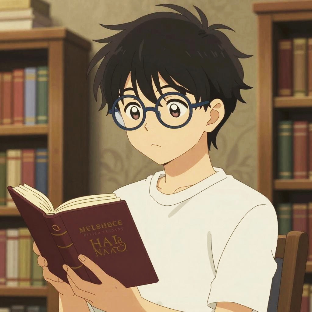 Cozy Anime Boy in Library