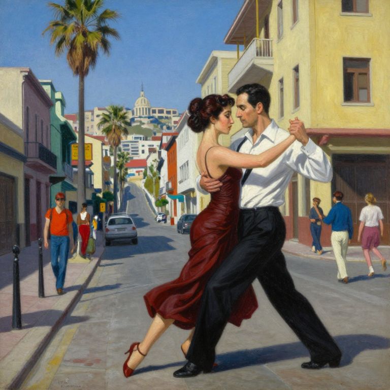 The unforgivable corto maltese dreaming about the forbidden streets of valparaiso and its tango feelings, oil on canvas by dave mckean and yoji shinkawa
