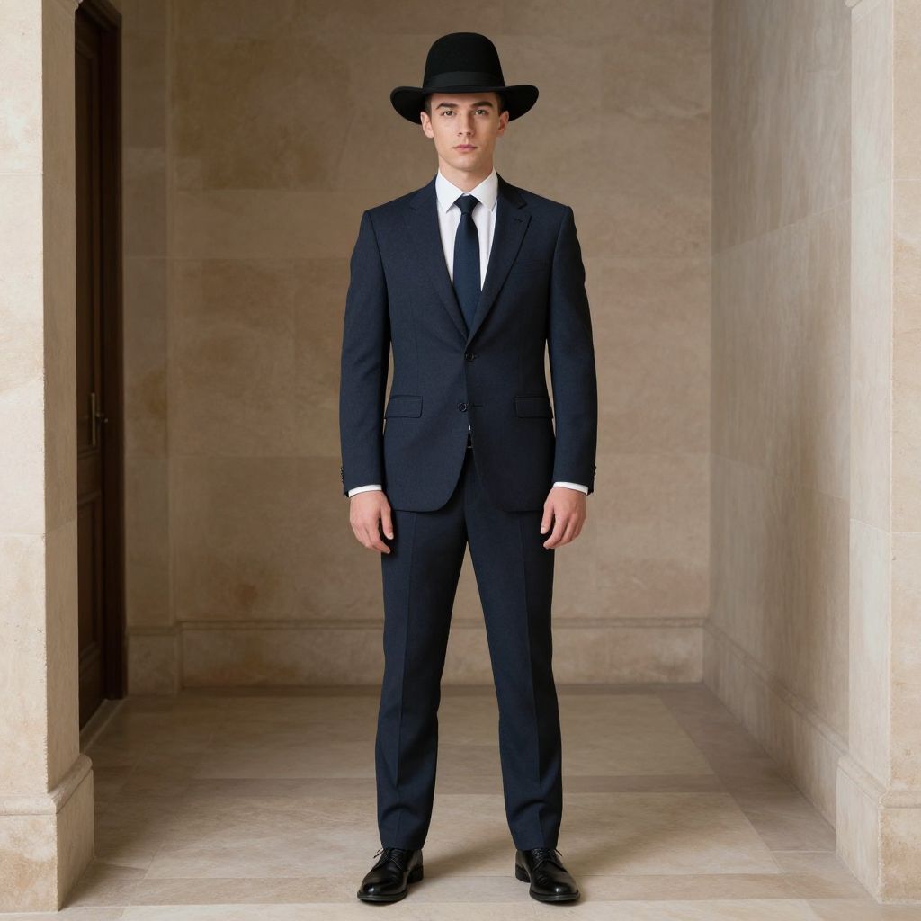Paris Themed Costume, man in a suit and hat standing in a hallway