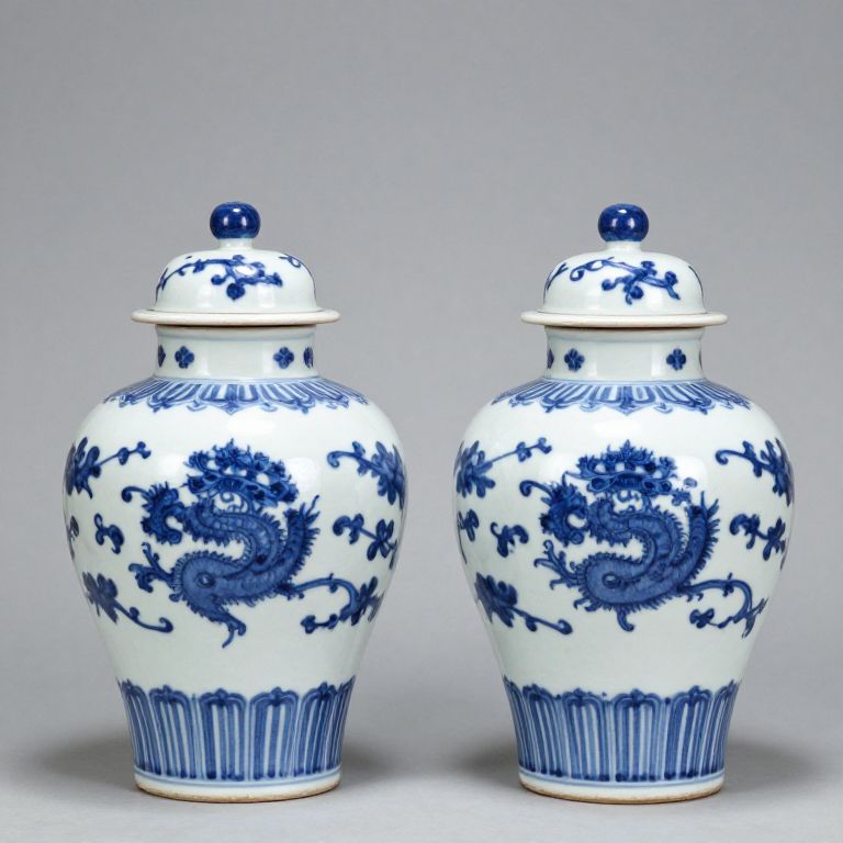 Lot 52 - A pair of modern Chinese blue and white ginger jars and covers, h.26cm