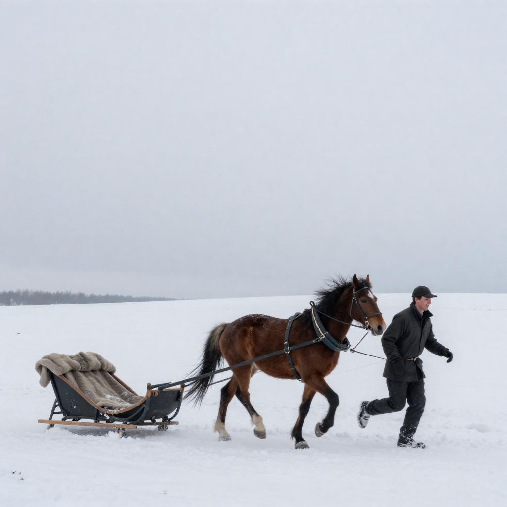 Horse-drawn Sleigh Ride in Snowy Landscape