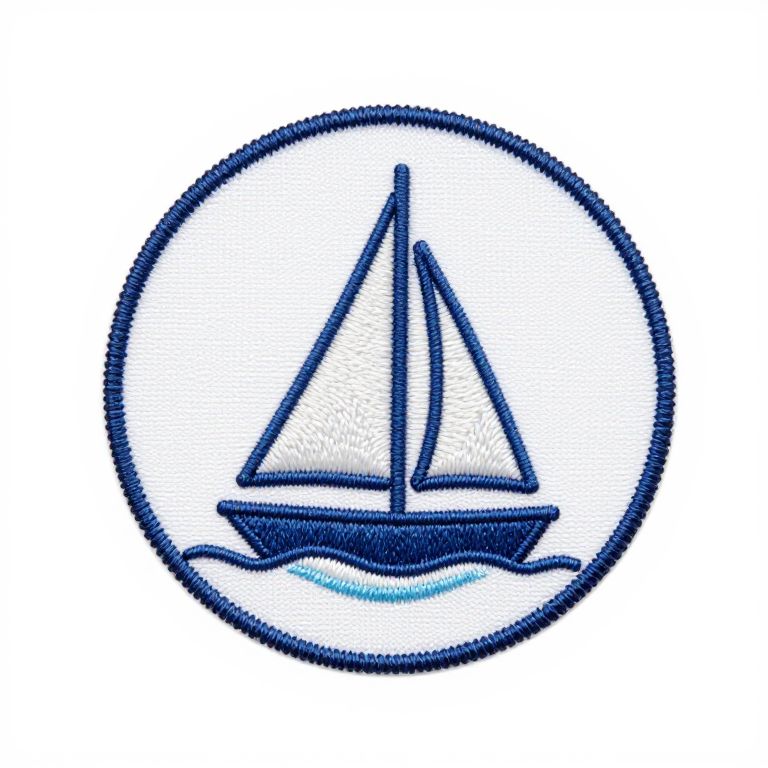 Embroidery Lace Generate a corporate logo, the theme is sailboat, circle, background color is white,
