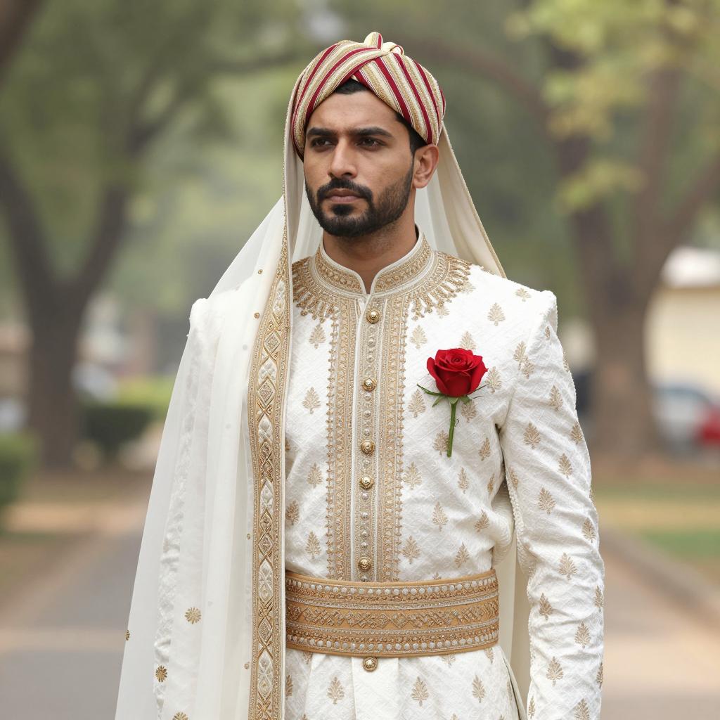 Elegant Pakistani Sherwani Portrait Outdoors