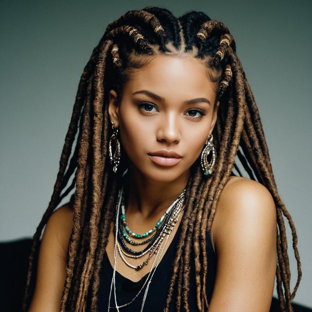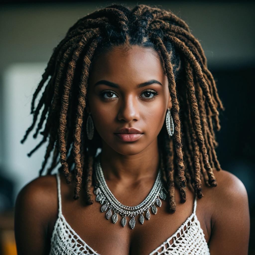 Stylish Crochet Locs on Dark-Skinned Beauty