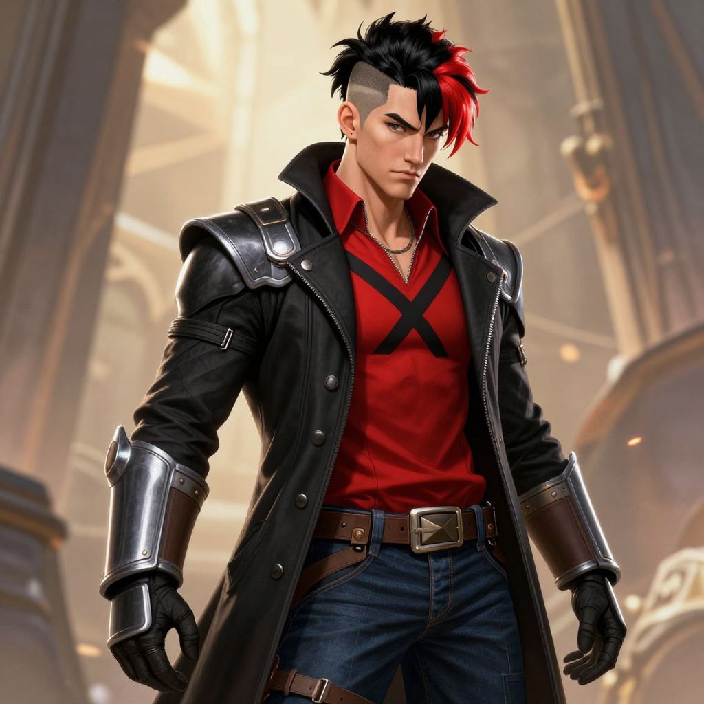 A man in a red outfit holding a sword, cyberpunk art by torii kiyomitsu, cgsociety, fantasy art, redshift, rich color palette, anime aesthetic, from behind