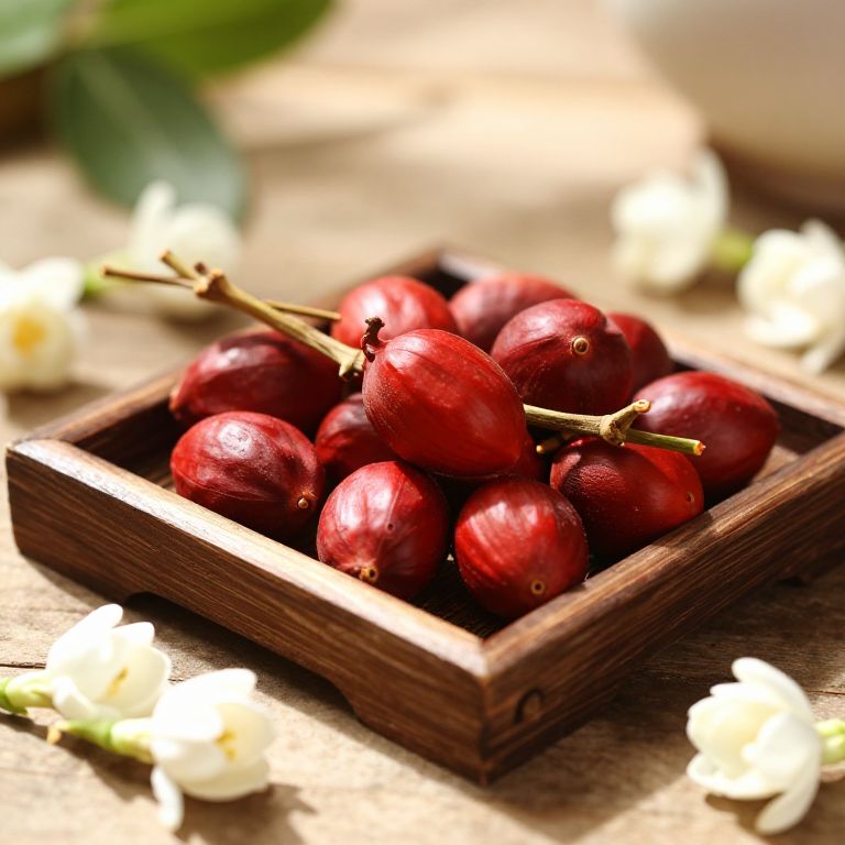 Betel leaves intertwined with vibrant red areca nuts, arranged on a traditional wooden tray, surrounded by delicate jasmine flowers, soft natural light filtering through, showcasing cultural significance in a serene setting.