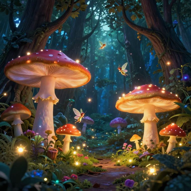 Vickili exploring a surreal fantasy forest, vibrant colors, glowing plants, whimsical atmosphere, intricate details, soft light filtering through the trees, a mysterious and magical scene, cinematic composition.